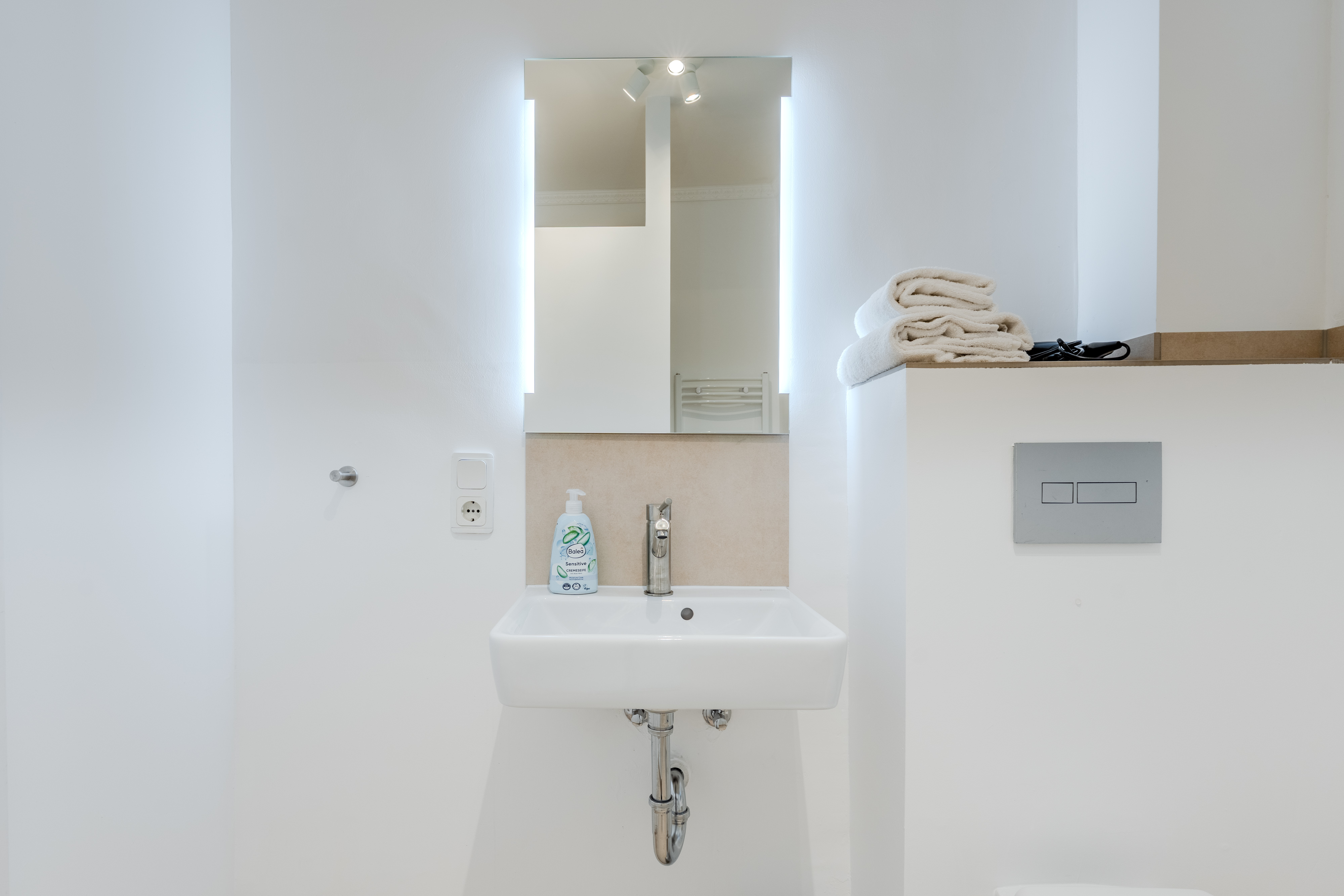 In einem sanierten sowie unter Denkmalschutz stehenden Berliner Altbau befindet sich das circa 18 qm große Studio im Souterrain des Gebäudes zum Innenhof.